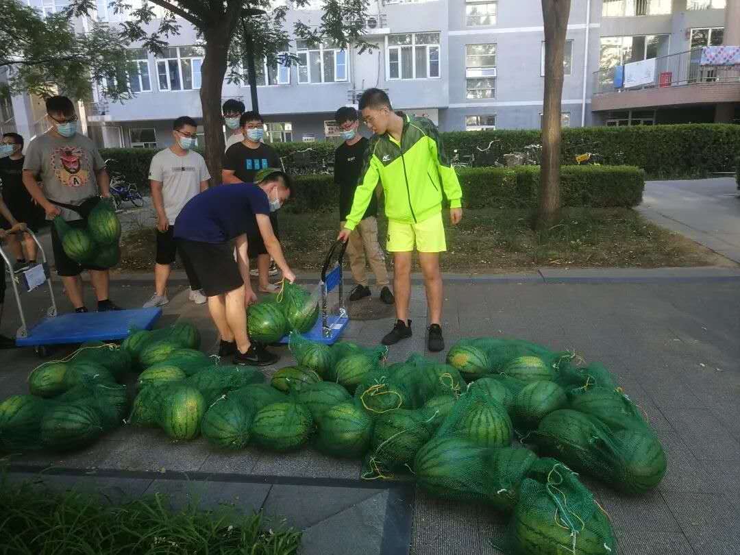 前期全面了解学生个人具体情况以及打包物品数量,为同学们发放了搬家箱子、编织袋、宿舍消毒清洁物资,以及搬迁小礼物西瓜。