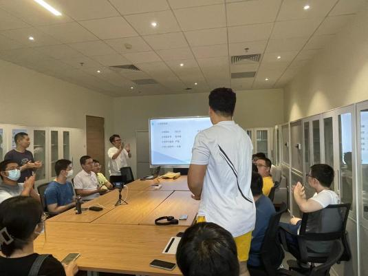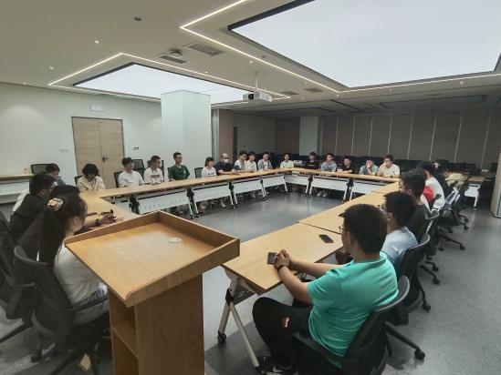 开展22级研究生第一次大班会,张权辅导员与吴越辅导员围绕着虎扑足球