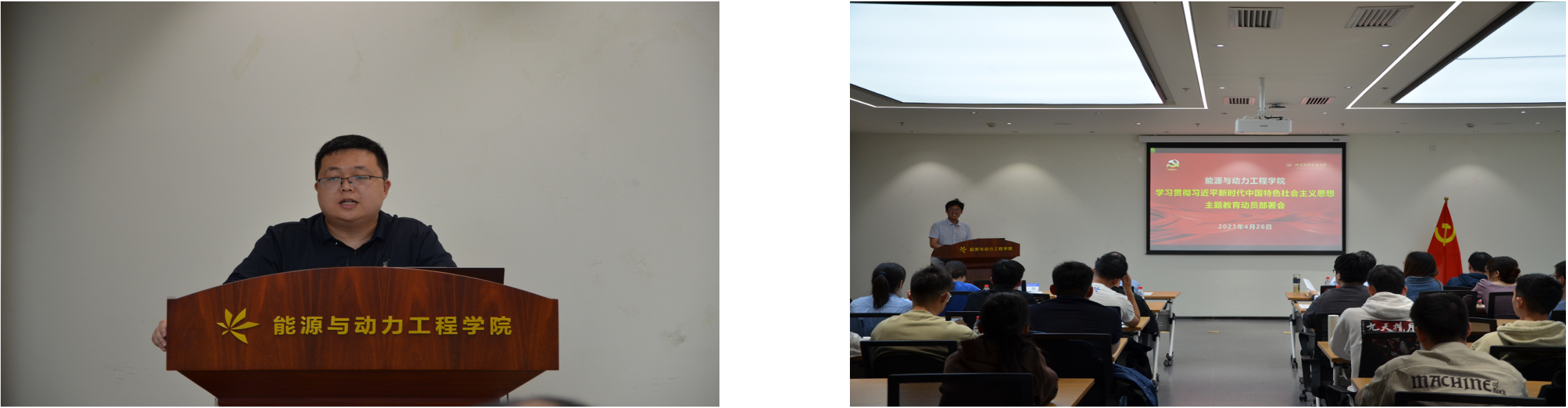 闫晓军传达了上级部门及学校党委关于主题教育的部署要求。学习贯彻习近平新时代中国特色社会主义思想,是新时代新征程开创事业发展新局面的根本要求。各级党组织和广大党员要切实把思想和行动统一到中央决策部署上来,提高政治站位,统一思想认识,强化责任担当,强化组织领导,不折不扣抓好贯彻落实,努力在以学铸魂、以学增智、以学正风、以学促干方面取得实实在在的成效,达到凝心铸魂筑牢根本、锤炼品格强化忠诚、实干担当促进发展、践行宗旨为民造福、廉洁奉公树立新风。