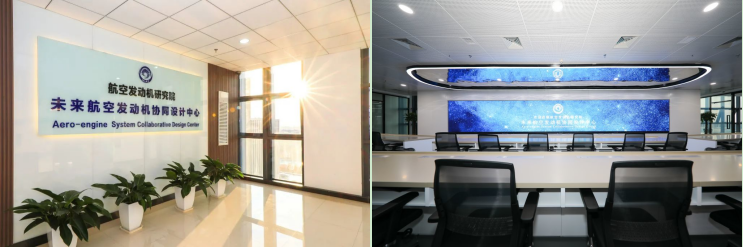 依托工信部某基础科学中心、教育部先进航空发动机协同创新中心、教育部超循环气动热力前沿科学中心和科工局吴大观创新中心,于2021年3月19日在北航沙河校区由北京航空航天大学和中国航空发动机集团有限公司共同揭牌建成1500平米未来航空发动机协同设计中心,中心设有1个大型协同环境和9个协同岛,可容纳120人协同开展航空发动机设计。