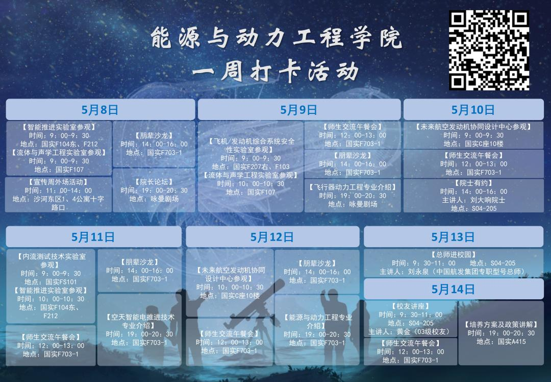 还组织了院士有约、总师进校园、校友讲座等活动,欢迎同学们积极扫描二维码报名!