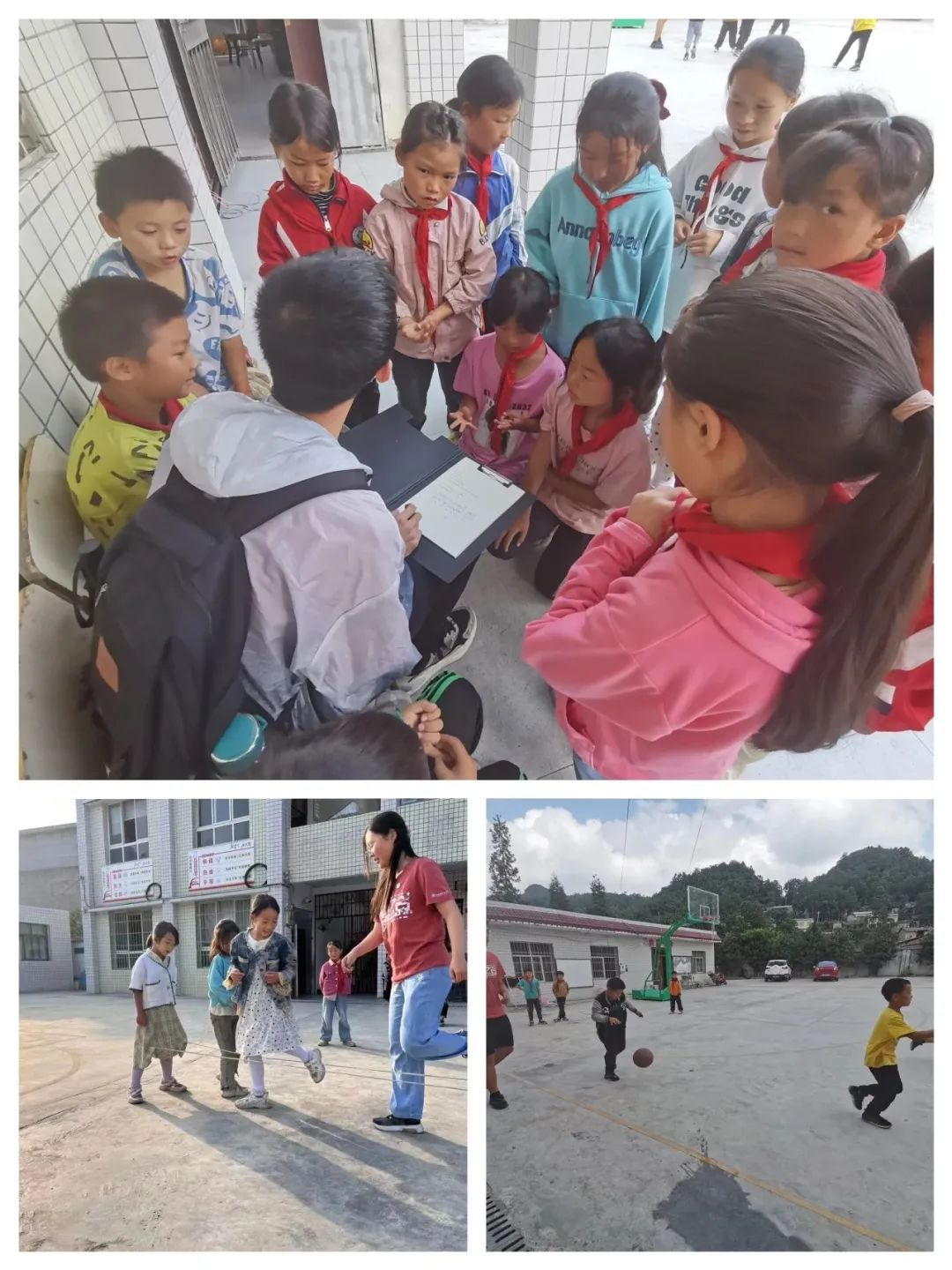 教育的本质是一个灵魂唤醒另一个灵魂。有灵魂的教育不仅仅体现在课堂上,还体现在课外活动里。为了丰富孩子们的课余生活,队员们积极开展篮球、足球、乒乓球等体育运动,锻炼体魄,强身健体。同时进行文艺排练,带领同学们唱歌、跳舞、绘画……在一次次活动中感受艺术的熏陶。队员们很快与孩子们相得甚欢,给他们讲故事,和他们做课间操,陪他们一起晨读,与他们进行心灵间的交流。用爱浇灌教育,播撒爱的种子。孩子们一张张红润的笑脸温暖队员们的内心,队员们在努力为孩子们绘制幸福蓝图的同时,也被他们的爱意所包裹。奉献真心传爱意,回报幸福倍沾身。