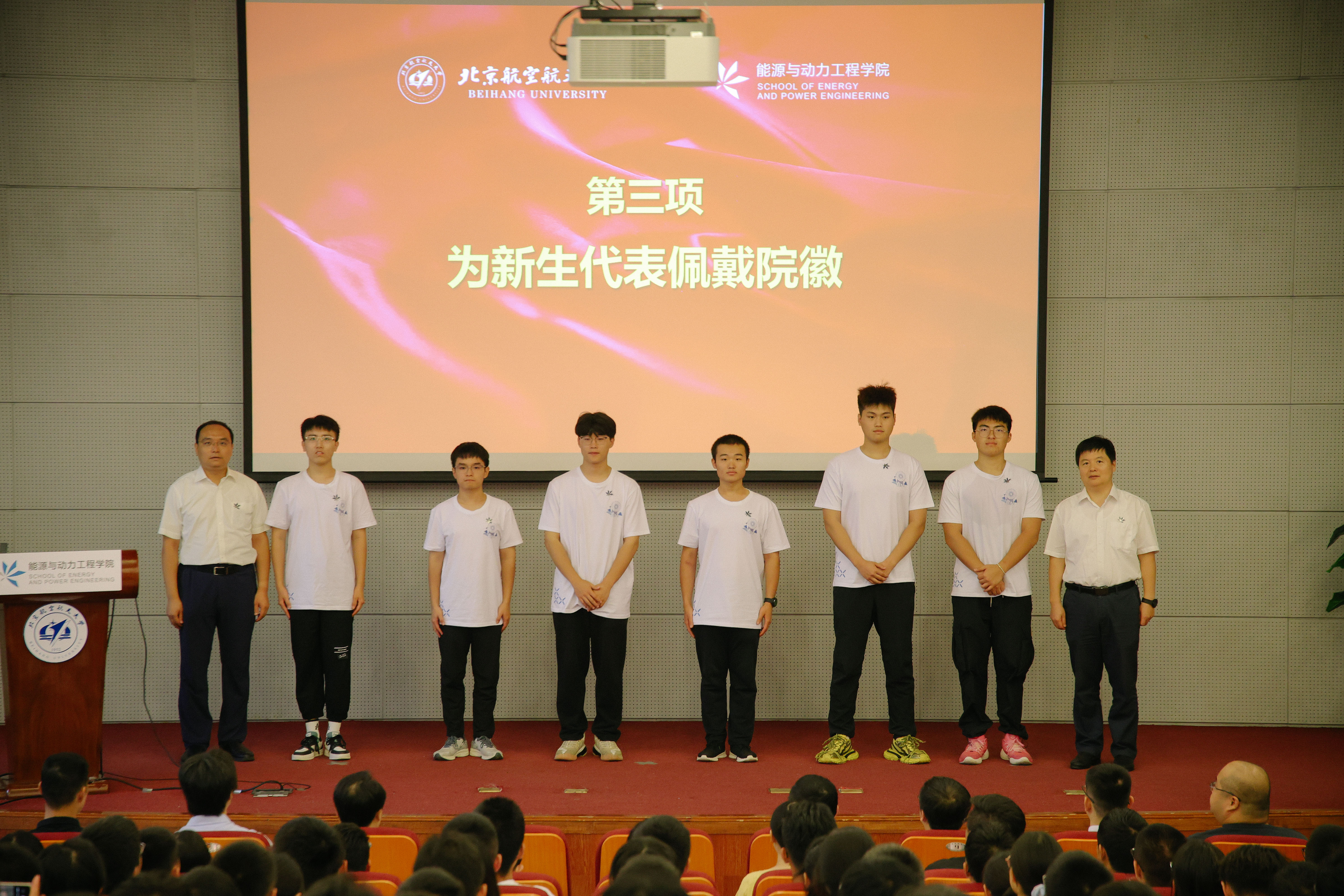 领导老师为新生代表授予院徽。全体新生将院徽佩戴在胸前,正式成为虎扑足球