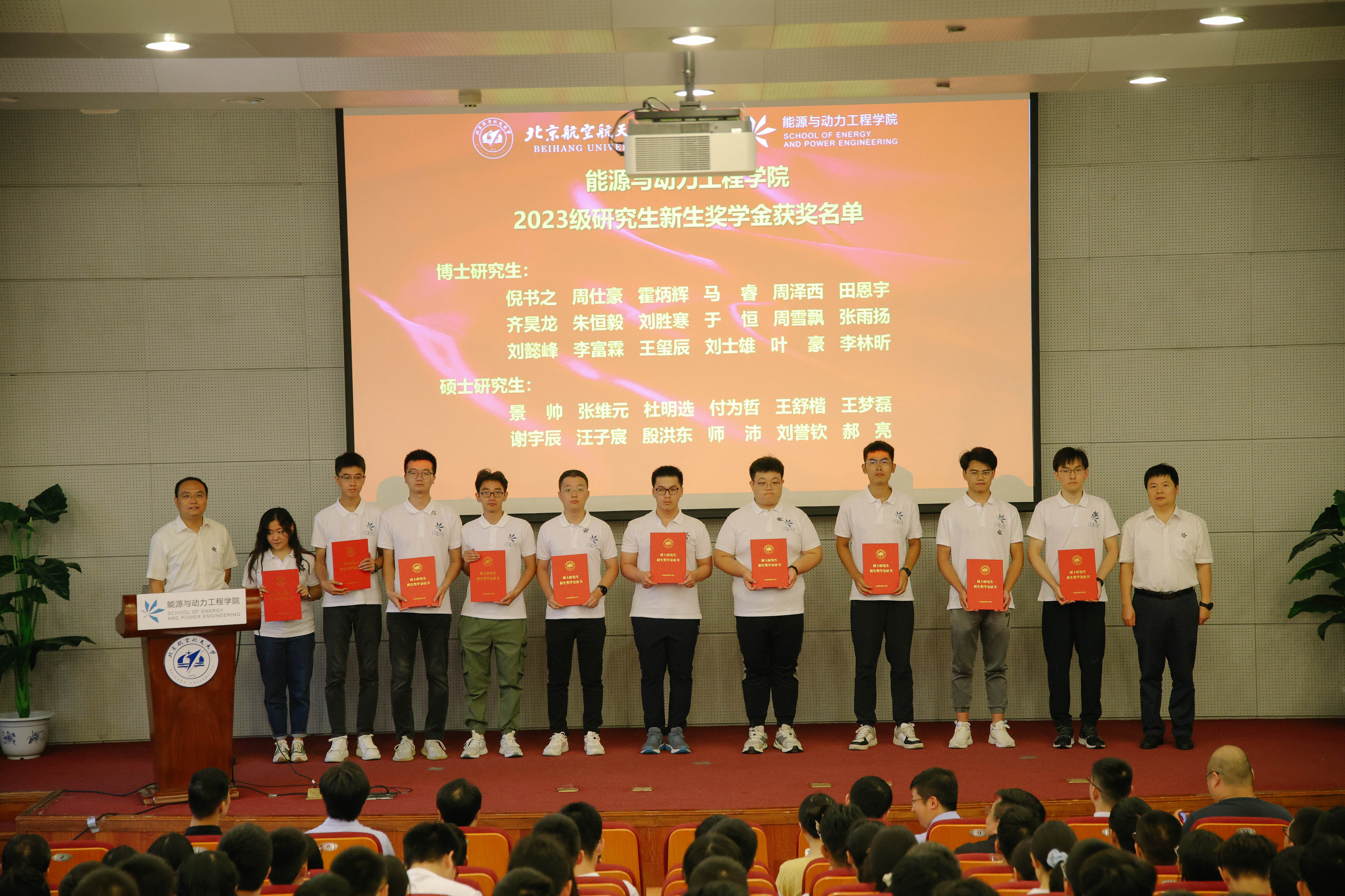 副院长额日其太宣读研究生新生奖学金获奖名单,获奖代表上台领奖,怀揣航空报国之志,镞砺括羽,勇攀高峰。