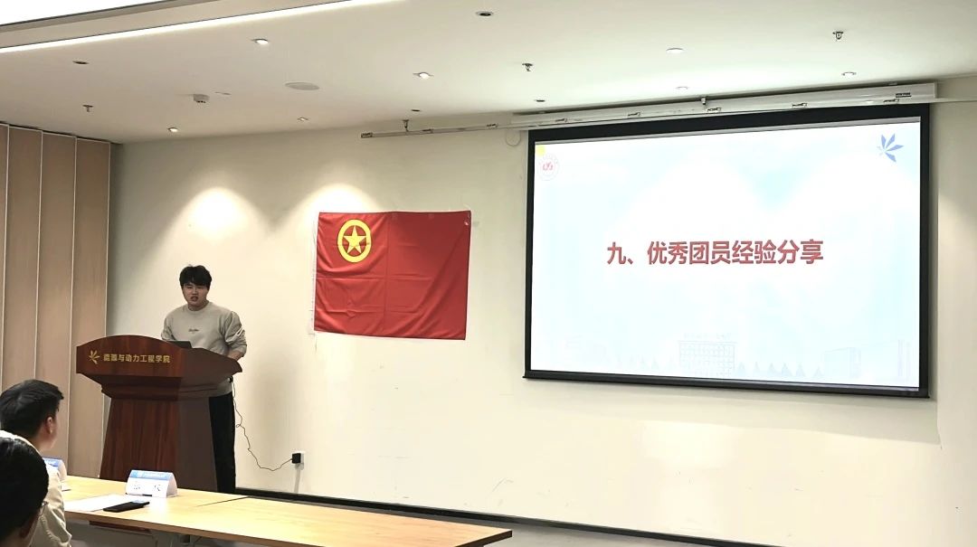 优秀团员张迪以自己在理论学习、学生工作等方面的成长为例,号召大家紧跟时代步伐,加强学习意识,提高思想理论水平,珍惜青年大学习、团日学习等集体学习机会;积极承担责任,主动参与到服务活动中,脚踏实地做事,争做模范先锋。