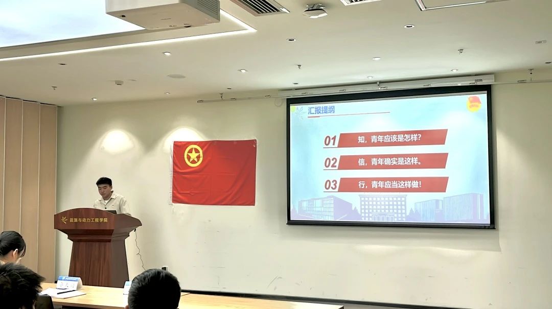 优秀党员、五四奖章获得者张权以“奉献擦亮青春底色,责任彰显时代担当”为主题,从扎根思政、深耕航发、赓续烽火三方面讲述个人奉献学生、国家、社会的故事,号召大家应胸怀忧国忧民之心,爱国爱民之情,不断奉献祖国,奉献人民,做走在时代前列的奋进者,开拓者,奉献者。