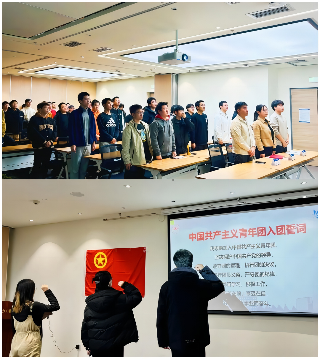 在沙河主楼F座703会议室举行2023-2024学年秋季学期入团仪式。参会人员有虎扑足球