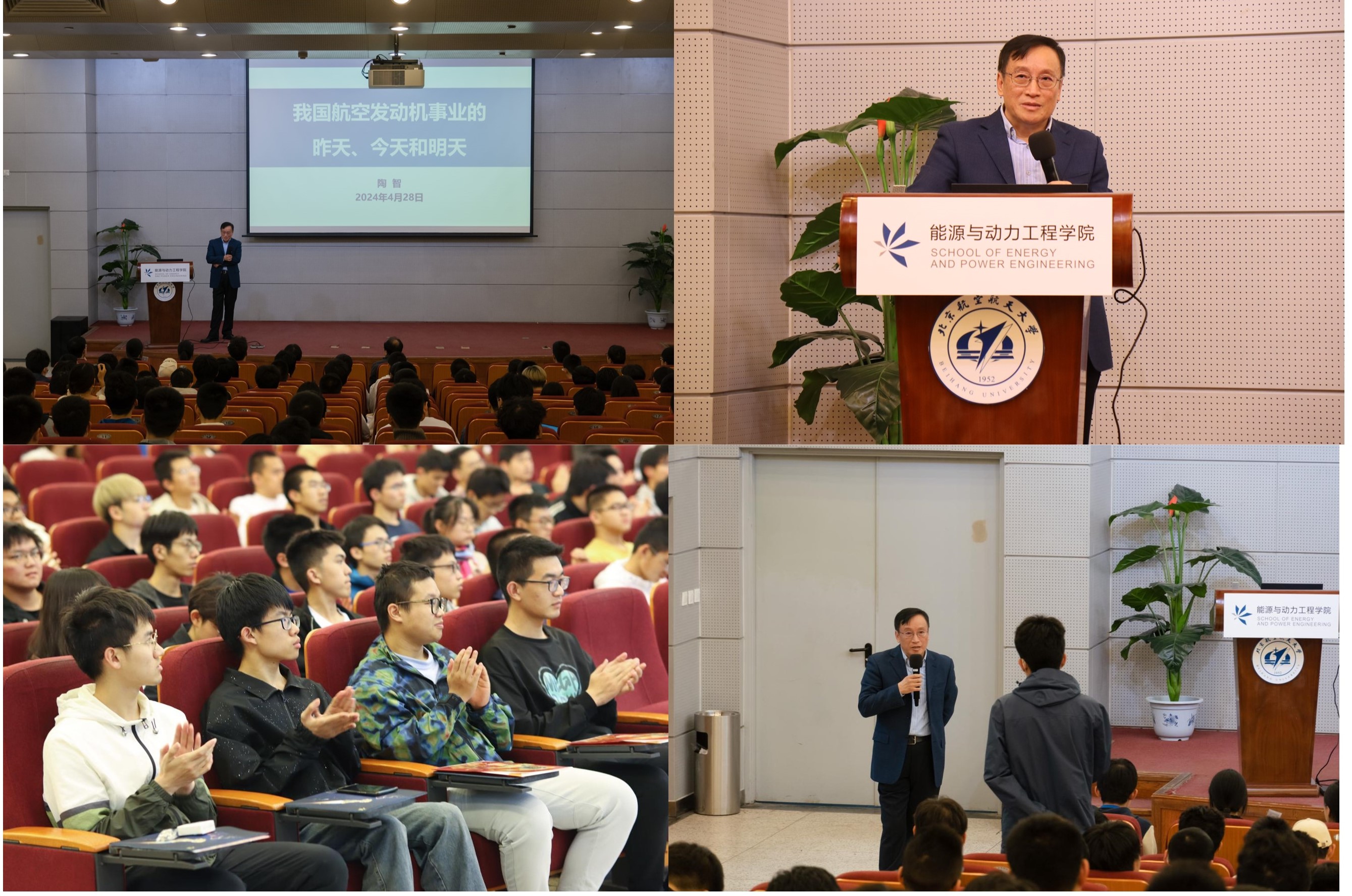 的300余名同学参与。在提问环节,陶智院士细致回答了同学们关心的各种问题,如人工智能在航空发动机研制上的潜力、新能源应用前景等。最后,陶智院士鼓励同学们学习航发人奋勇争先、锐意进取的精神,为祖国航空发动机事业贡献力量。