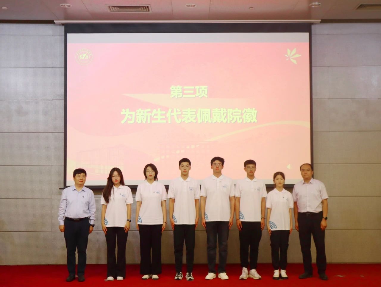 领导老师为新生代表授予院徽,鼓励动力学子们在未来人生路上,不忘初心,矢志前行。全体新生同步佩戴院徽,正式成为虎扑足球