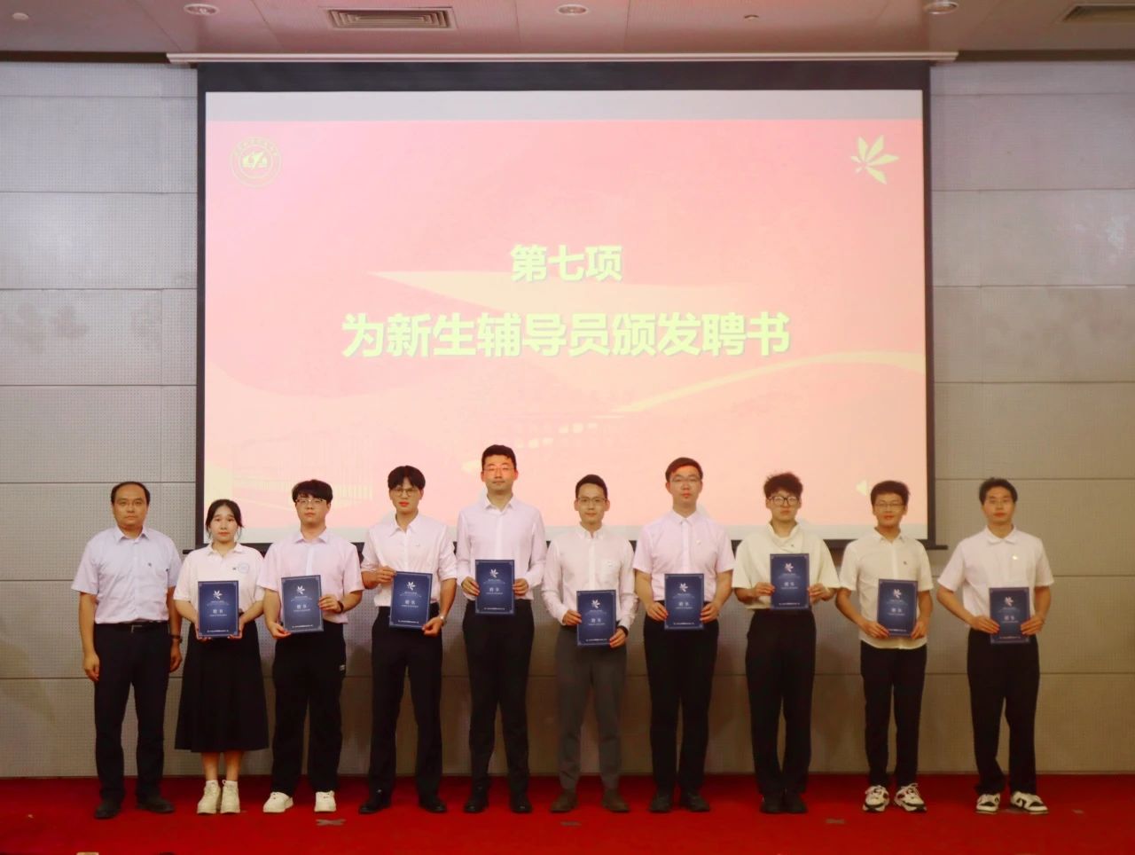 党委副书记谷萌宣读新聘任辅导员名单,党委书记董卓宁为新聘任辅导员颁发聘书。从学生到辅导员,从沿路到领路,昔为学子步书廊,今作园丁育栋梁。