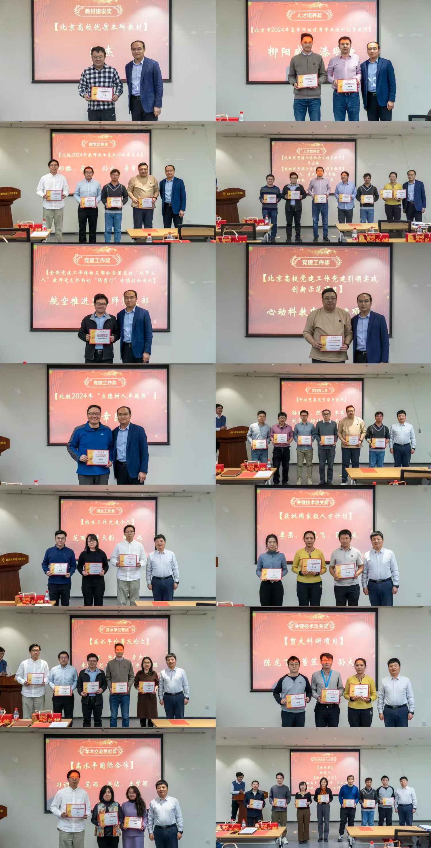 领导分别为获得教材建设奖、人才培养奖、教学比赛奖、党建工作奖、实践育人奖、招生工作奖、关键技术攻关奖、高水平论著奖、学术交流贡献奖、引进海外人才奖等获奖教职工颁奖。