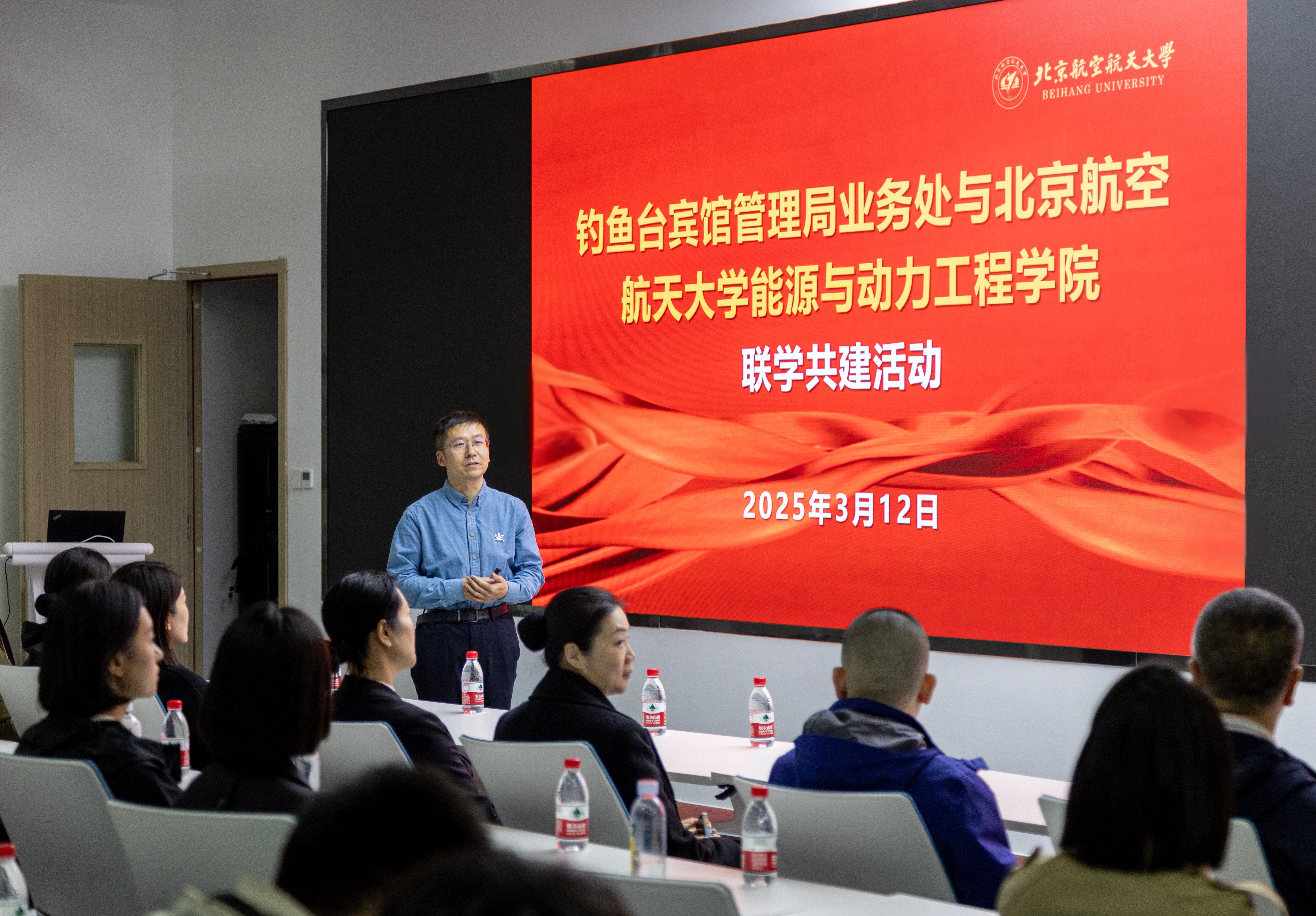 党委书记董卓宁对钓鱼台宾馆管理局业务处一行的到来表示热烈欢迎。双方分别就党建工作与业务工作开展情况进行了介绍,并表示通过此次共建交流活动,进一步加深了青年干部师生对航空航天精神和中国特色大国外交理念内涵的理解和认识,在加快建设教育强国、科技强国、人才强国,不断开创中国特色大国外交新局面征程上展现新担当实现新作为。