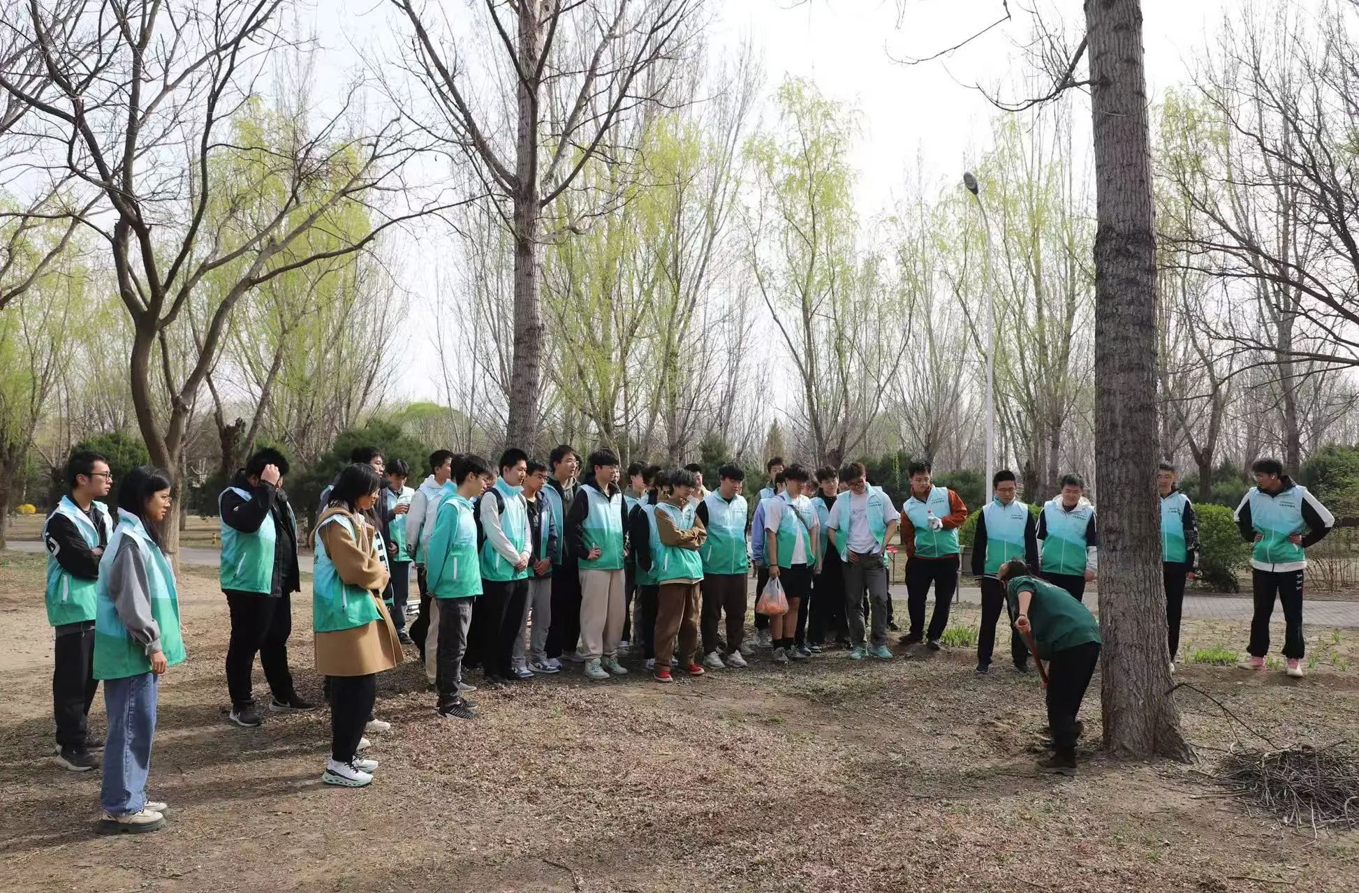 当天下午,同学们集体乘车到达植树地点,在短暂的技能培训之后,同学们领取统一的志愿者马甲,分组进行松土、浇水、除草工作,确保活动高效有序进行。一方田地,一把铁锹,一捧甘霖,为公园绿化添砖加瓦。