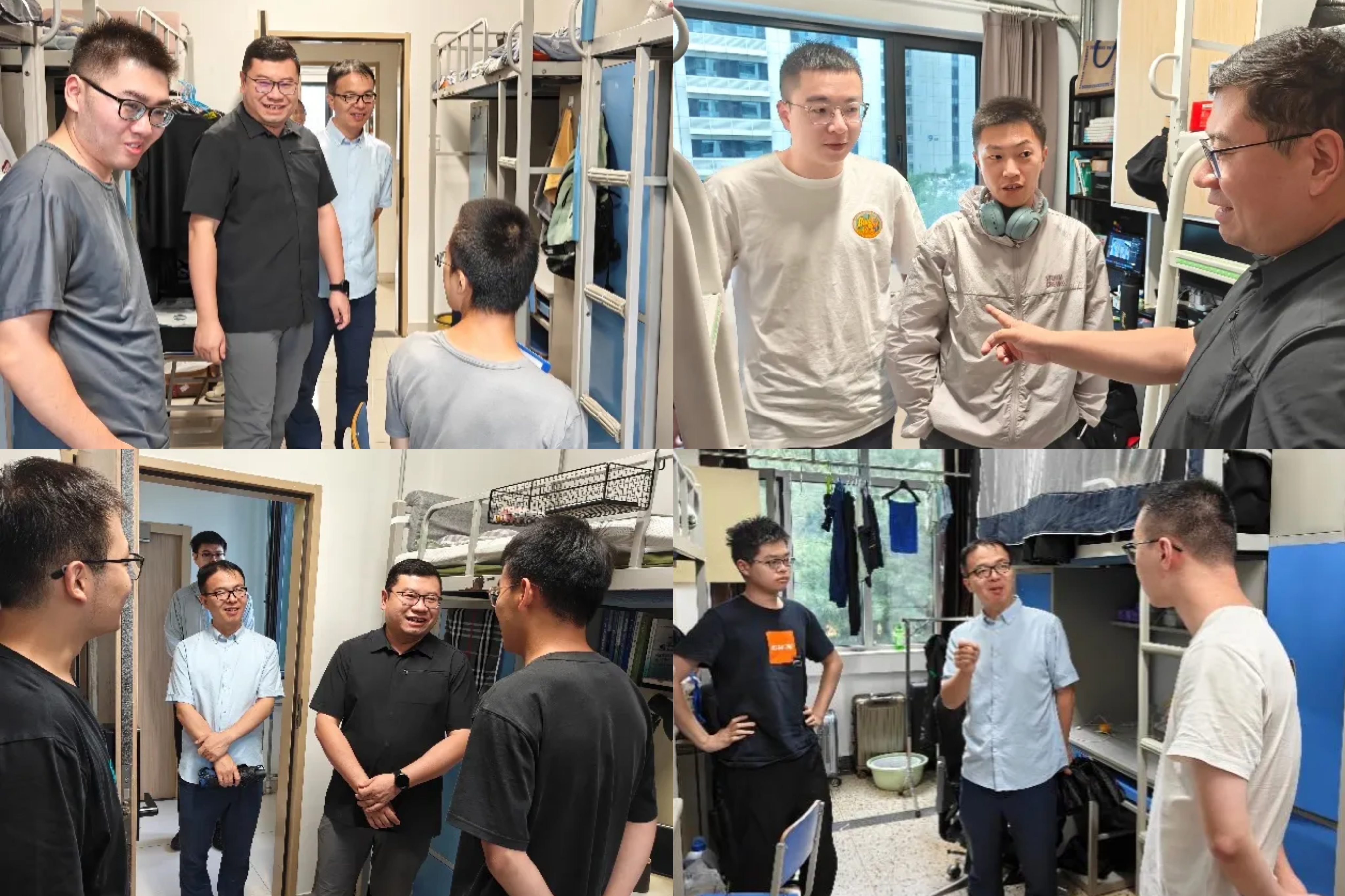 老师们走进宿舍与新生亲切交流,详细了解大家的科研方向与生活需求。