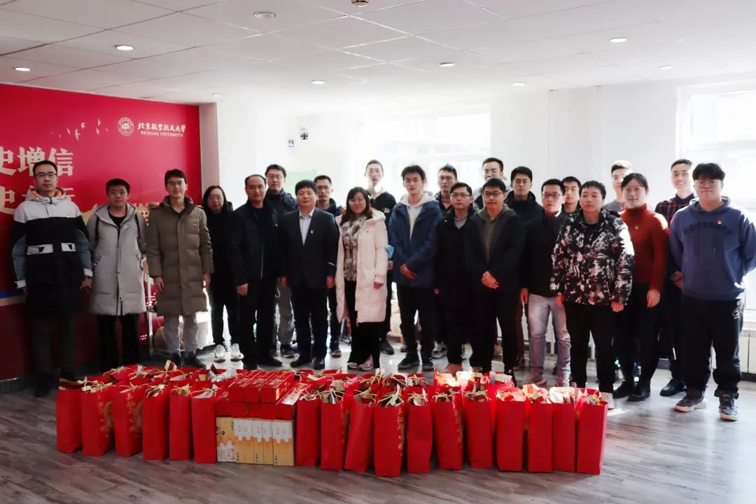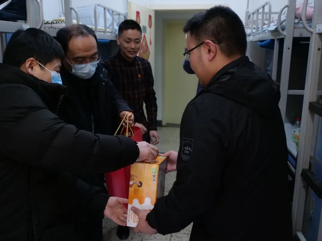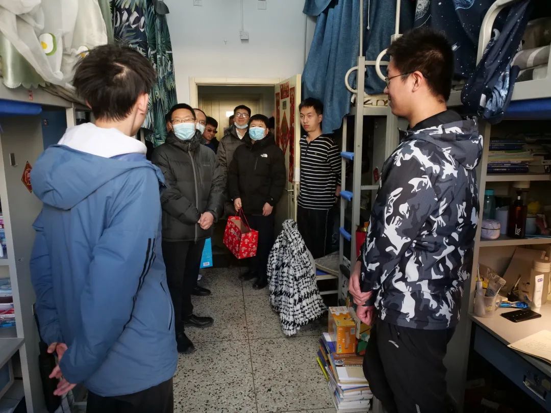 党委书记董卓宁等到宿舍楼慰问留校学生,与学生们亲切交流,询问留校学生的学业生活情况,并送去春节慰问品。