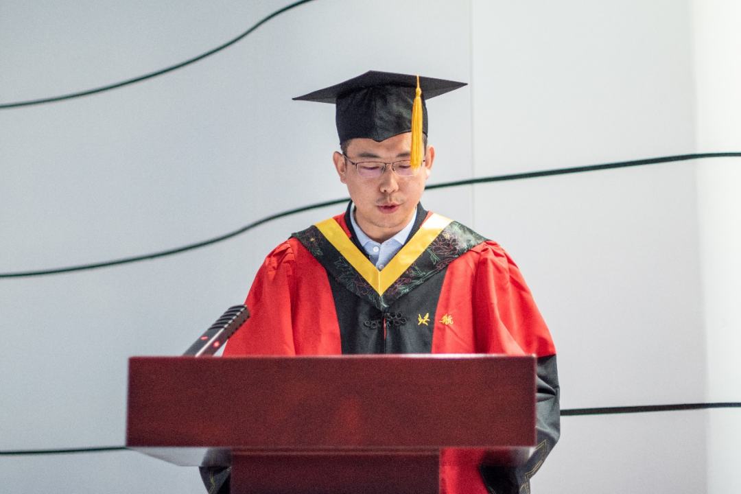 导师代表石多奇老师对同学们顺利毕业致以热烈的祝贺!希望同学们脚踏实地、仰望星空,保持学习和独立思考的习惯,保持做人的底线、乐观向善,带着坚韧和勇气不断前行。