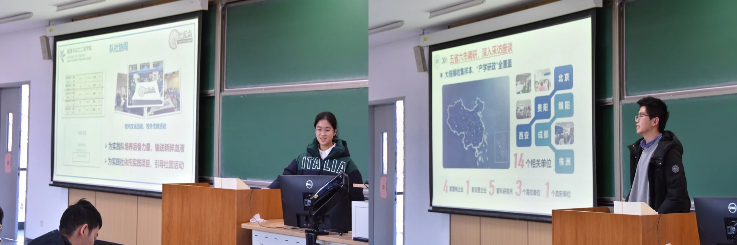 炬火相“川”实践队队长瞿综向同学们介绍实践队并作招新宣传。炬火相“川”实践队成立于2022年,以“寻找‘蜀’于我们的航空航天梦”为宗旨,立炬火相传之意,取川蜀大地之音。三年以来,实践队获得2023暑期社会实践校级三等奖、院级二等奖,2024寒假社会实践院级二等奖、2024暑期社会实践校级二等奖、院级一等奖,2025寒假社会实践校级二等奖、院级一等奖等多项荣誉,并在6次实践中建立起三维招生宣讲社会实践模式。着眼于寒假实践,实践队将继续推进三维实践模式的计划实施,也将持续联动关系紧密的各个合作伙伴,为2026届高考生以及各年级在校生开展多样活动。同时,实践队还将聚焦科普教育,开展线上线下科普课堂,为各年龄段的同学提供科普教育。