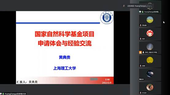 接下来,两位专家分别介绍了自然基金撰写、评审过程中的注意事项并分享了经验。宇波教授从科学问题属性确定、基金撰写及体会、申请书推荐撰写顺序三个方面进行了阐述,其中结合具体实例,进行了详细的分析,实用性和可操作性很强。黄典贵教授从心态、选题、申请书三要素、立论、方案、队伍、基础等几个方面进行了指导,既有全局分析又有细节点拨,老师们反馈收获很多。