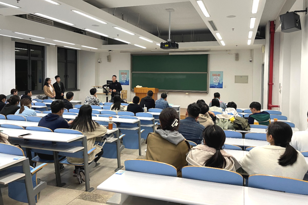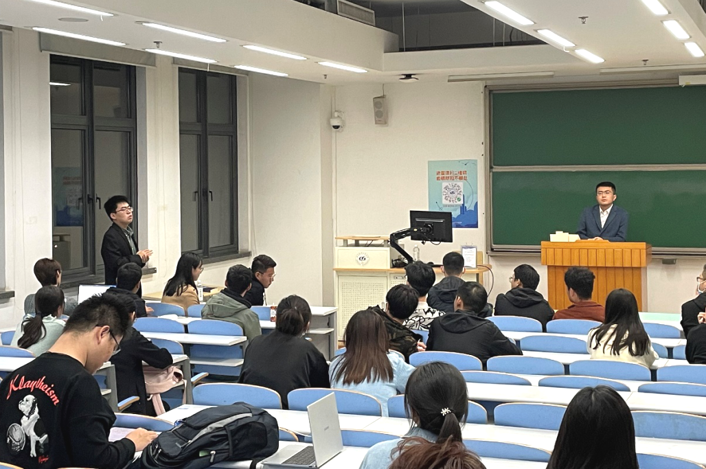 研究生本学期首次就业经验分享会如约在J4-206进行。本次活动邀请到刘鸿志、张皓天两位优秀校友作为嘉宾,主要就专业内就业选择、选调生备考经验、职位选择等话题以自身经验为基础进行了分享。分享会由花志伟主持。