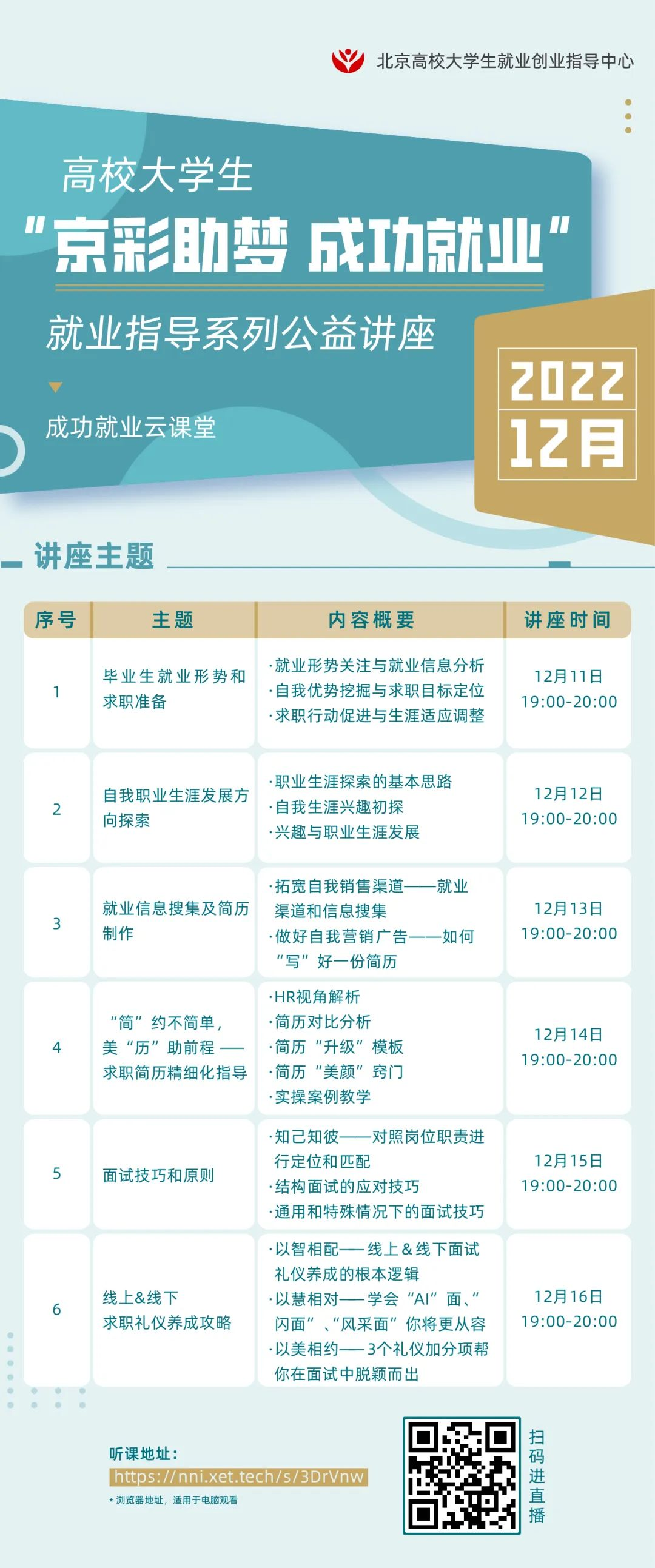 京彩筑梦 成功就业 | 12月就业指导系列公益讲座