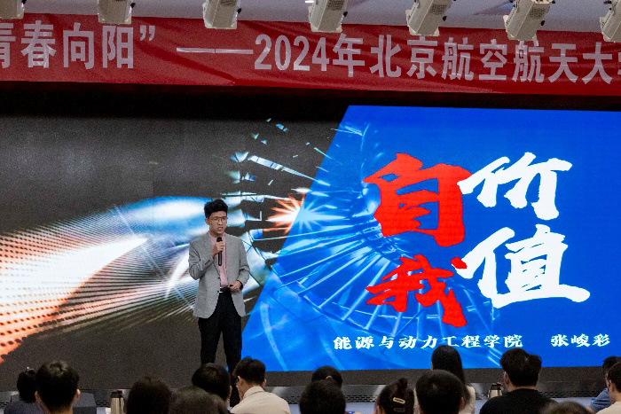 悦纳自我,与心灵并肩前行。本届比赛旨在通过展示学生进入大学后认识自我和悦纳自我的心路历程等,锻炼学生更加从容接纳真实的自己,以平和的心态促进其在大学中的成长。张峻彩将自己的航发梦想与现实生活结合,在竞争潮流和东升西落中发出属于自己的思考,最终以全新的姿态迎接未来的生活。